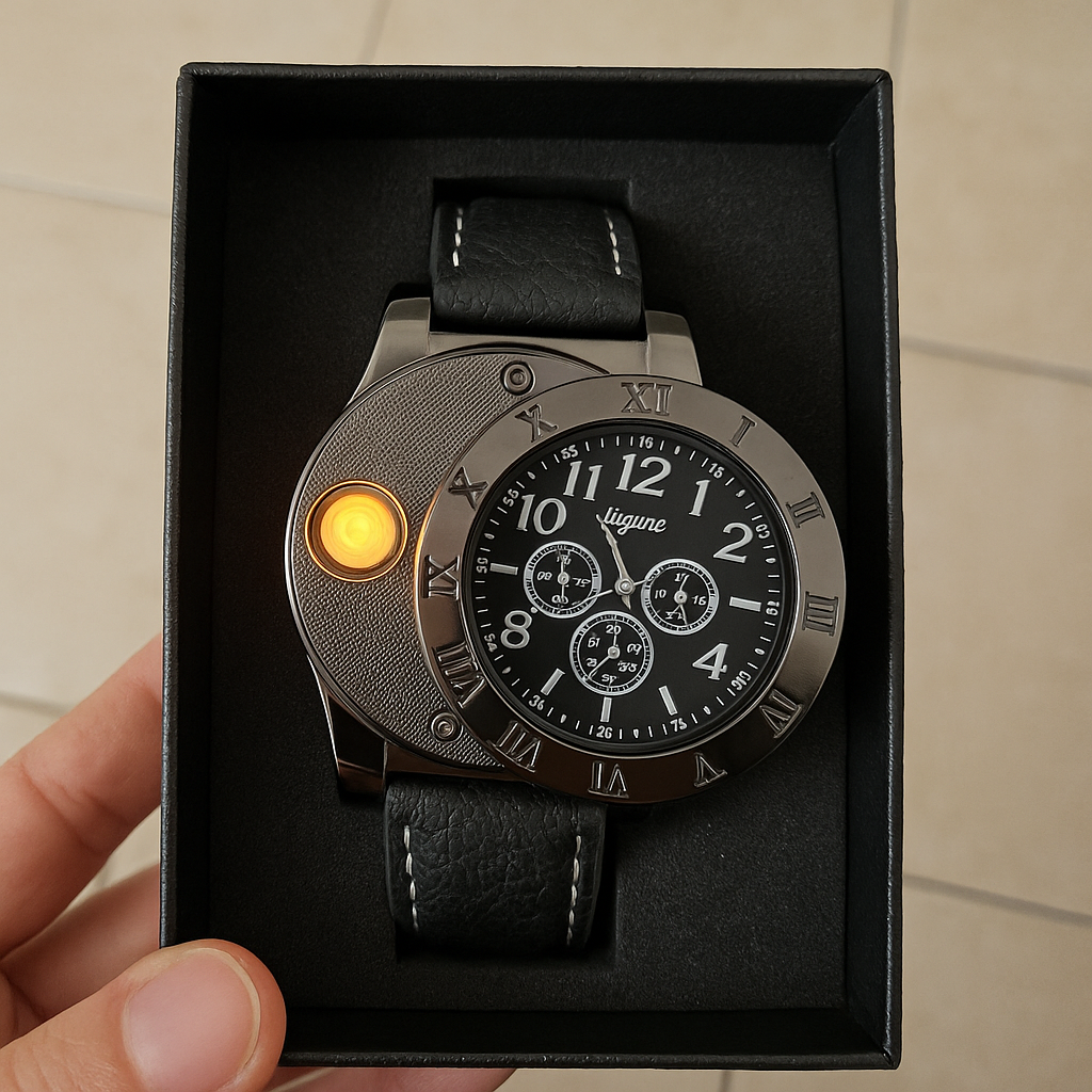 Diseño 2 en 1: Reloj elegante con encendedor eléctrico integrado.